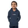 Looking for a comfy hoodie for your little one? This premium quality kids eco hoodie has a front pouch pocket, ribbed cuffs, and a lined hood for additional warmth. It's snug and soft to the touch. What's more, the hoodie is made from organic cotton and recycled polyester, making it a more earth-friendly fashion choice!